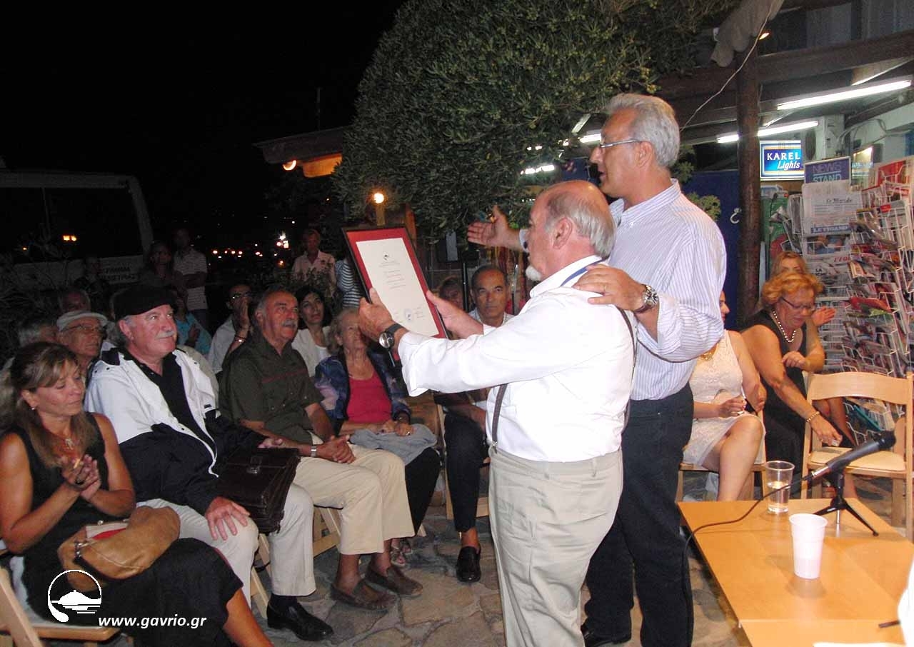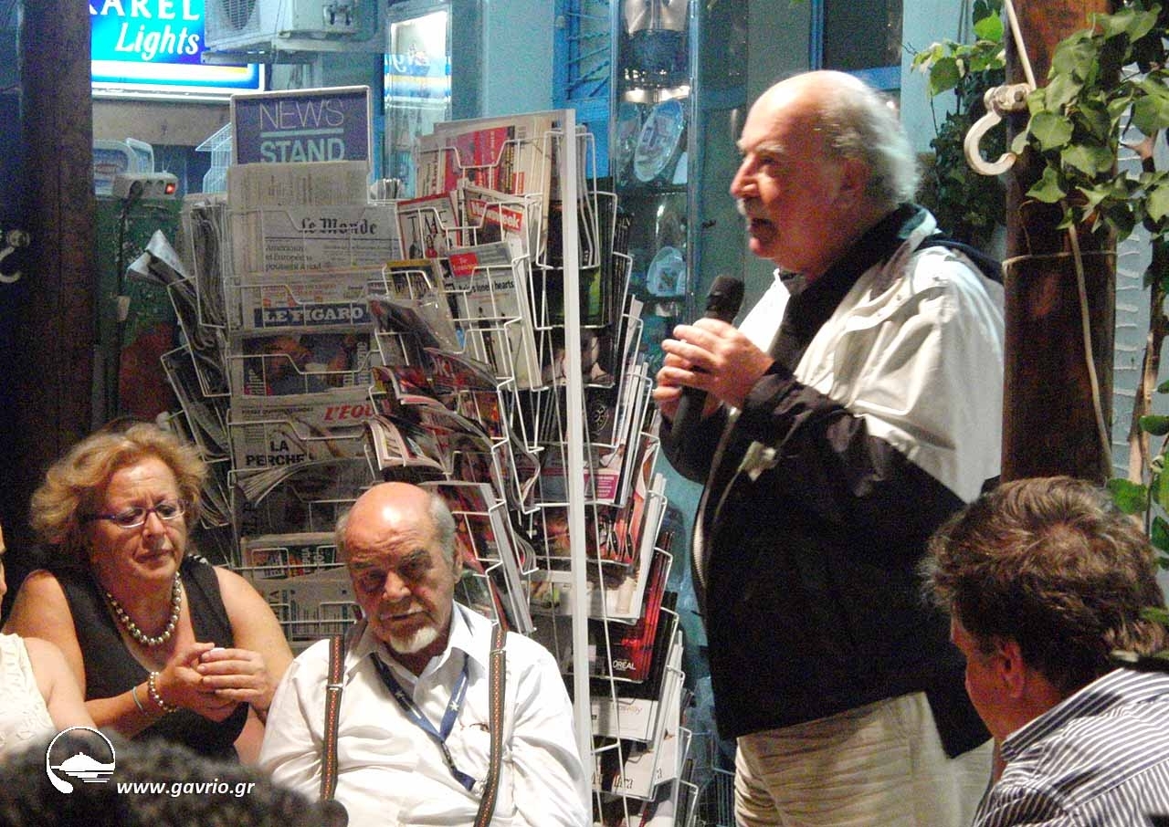 Στα πλαίσια του φετεινού προγράμματος εκδηλώσεων του συλλόγου μας διοργανώθηκε ειδική βραδια στο βιβλιοπωλείο “Λογάρι” για να τιμήσουμε τον γνωστό δημοσιογράφο και αντίπαλο της δικτατορίας Άγγελο Μαρόπουλο, που εδώ και μερικά χρόνια ζει μόνιμα στο λιμάνι μας έχοντας παντρευτεί την συμπατριώτισα μας Ελένη Κατσιώτη-Καστρέλη.