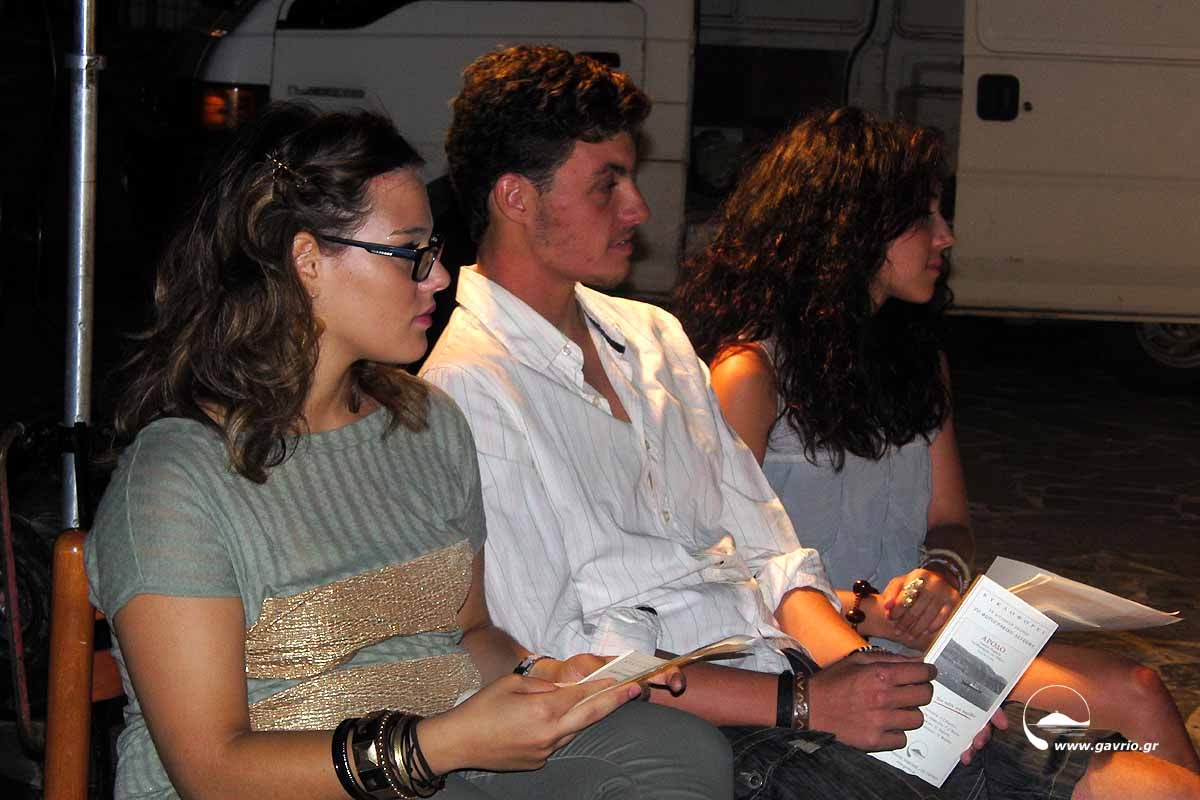 4/8/2012, Ποίηση μέσα από τη μουσική. Απείγγειλαν οι μαθητες του Λυκείου Γαυρίου Μαριφιλία Ζανάκη, Ηλίας Ανδρέου και η Άννα Αμπατζόγλου φοιτήτρια ΜΜΕ